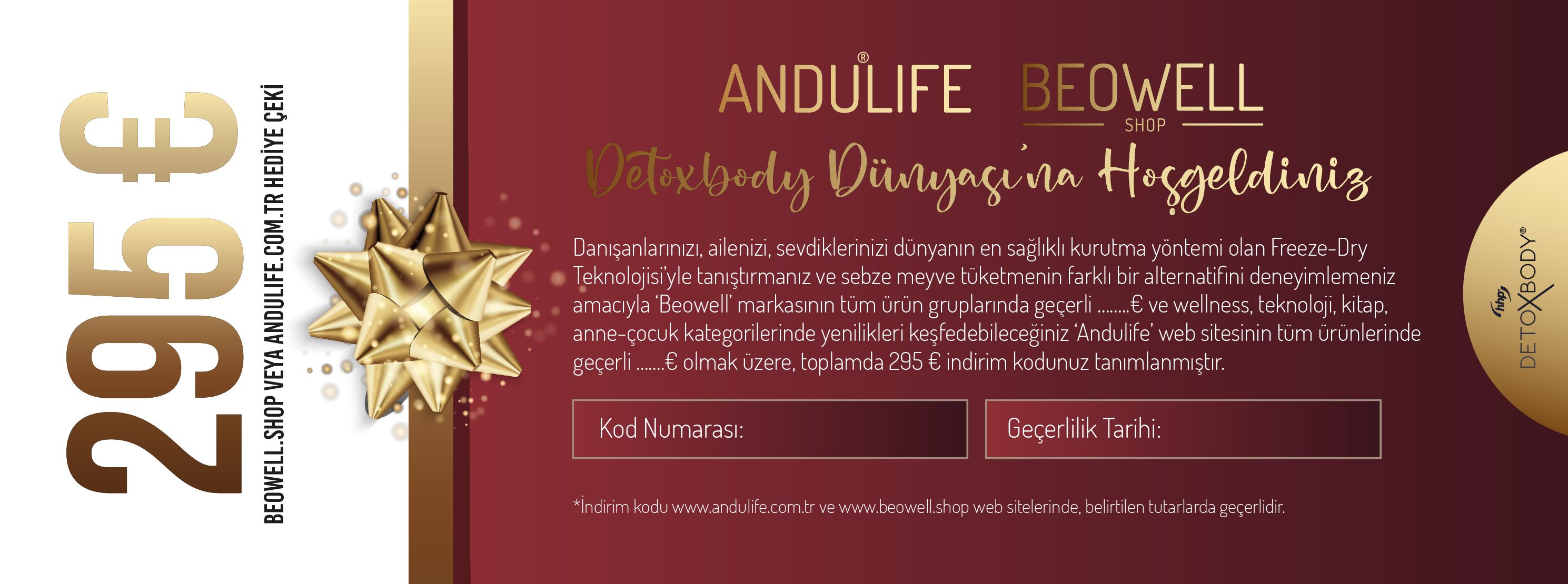 • 295 € beowell.shop veya andulife.com.tr hediye çeki